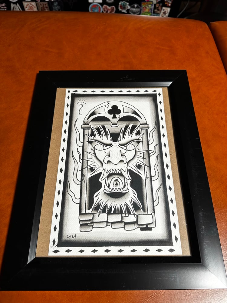 A hand designed, hand painted, one of a kind flash painting on arches watercolor paper. Great for tattoo memorabilia collectors or to add to your decor anywhere!