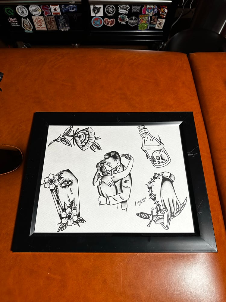 A hand designed, hand painted, one of a kind flash painting on arches watercolor paper. Great for tattoo memorabilia collectors or to add to your decor anywhere!