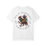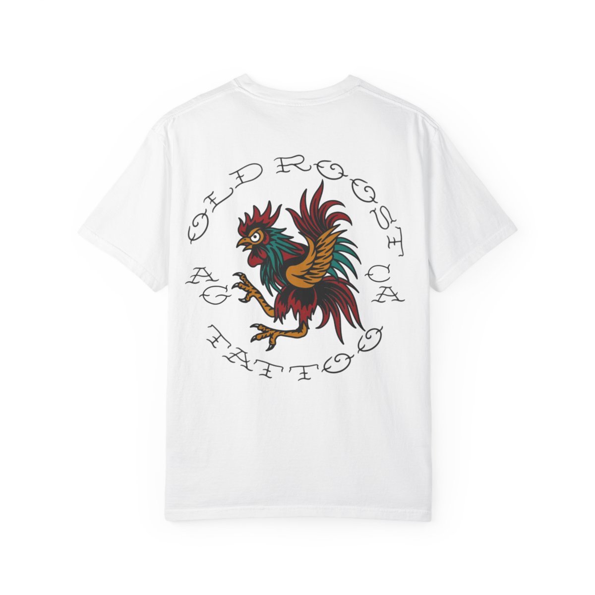 This heavyweight, garment-dyed tee brings old-school tattoo parlor energy into everyday wear. The relaxed fit and soft, post-dye finish feel lived-in from the first wear, while the bold traditional rooster artwork on the back and small chest crest read like a vintage flash sheet. It’s the kind of shirt worn between late-night sessions and coffee runs — sturdy, comfortable, and built to age with the wearer. Available in a wide range of colors and sizes, the tee keeps its shape with double-needle seams and pre-shrunk ring-spun cotton so the design stays front-and-center wash after wash.